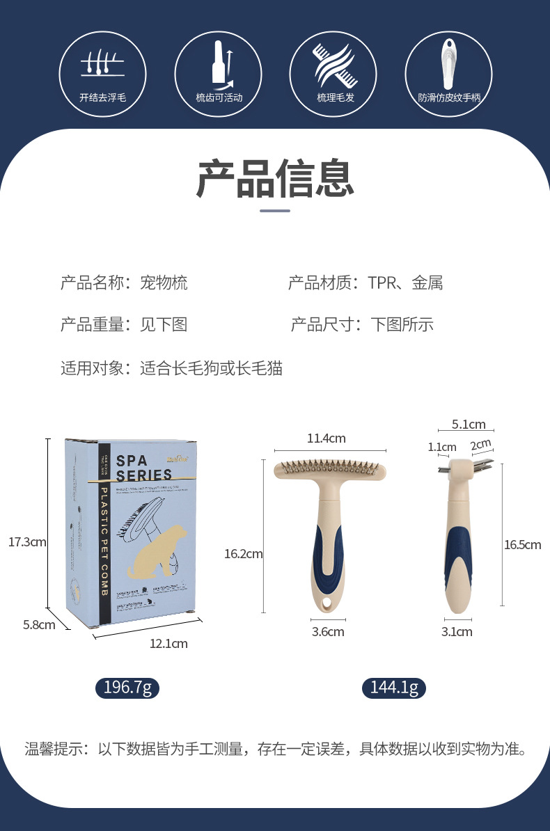 Specification: Multi-functional pet comb